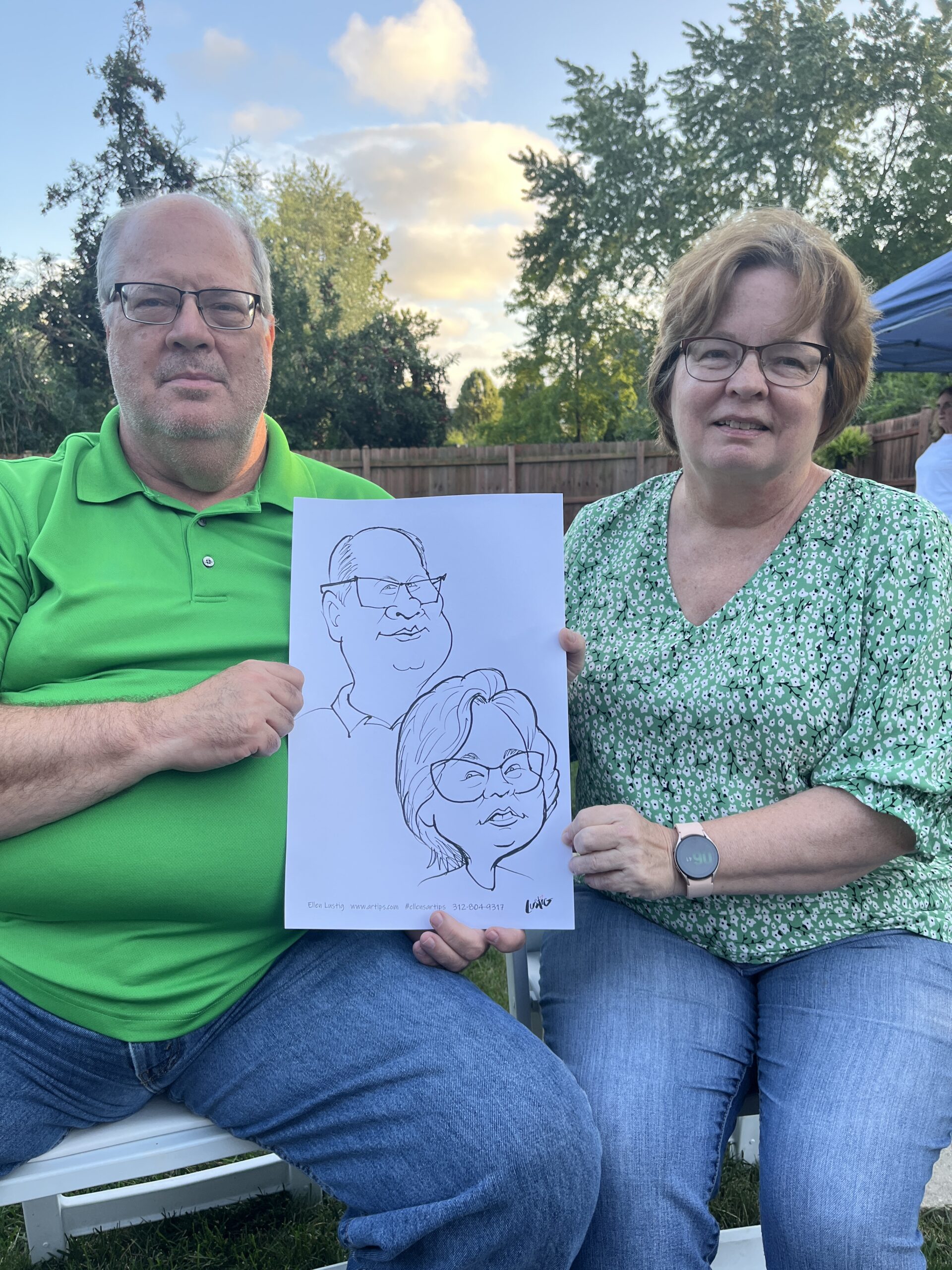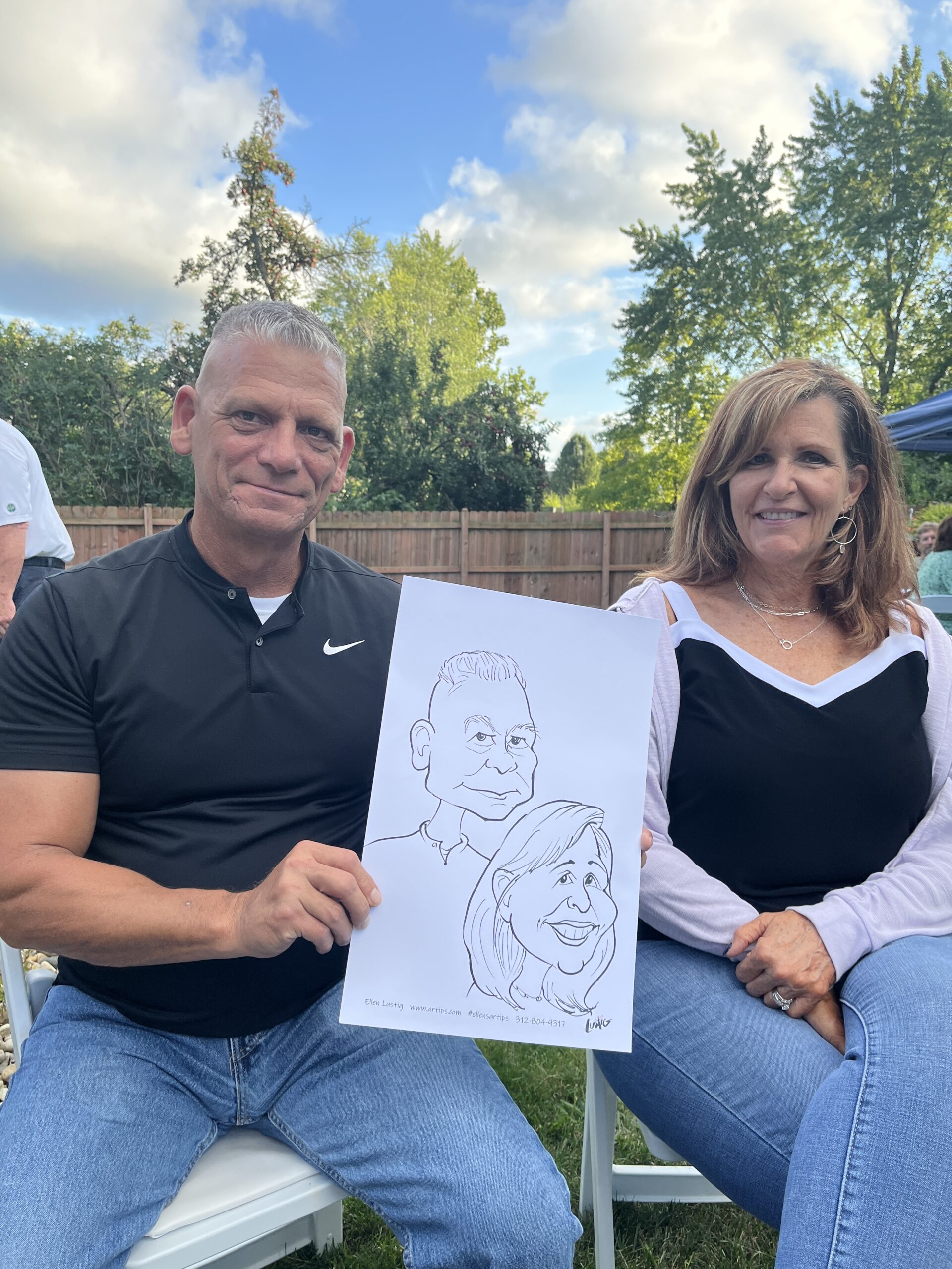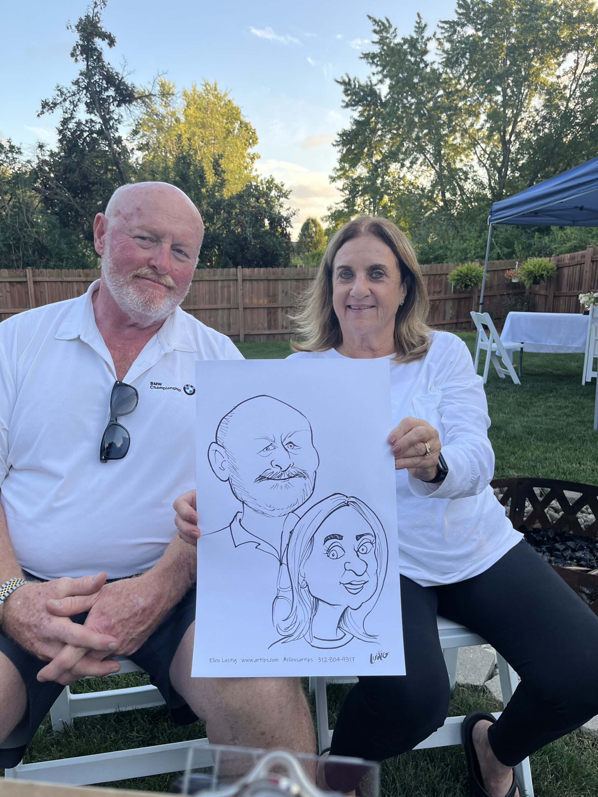 The Nichols hire Ellen to draw Caricatures at their dinner party On 8/26/23, I drew the couples at the Nichol’s home in Vernon Hills, Il. The drawings were transferred to a canvas as a gift to the celebrants. Share this: Click to share on Facebook (Opens in new window) Facebook Click to share on X (Opens in new window) X