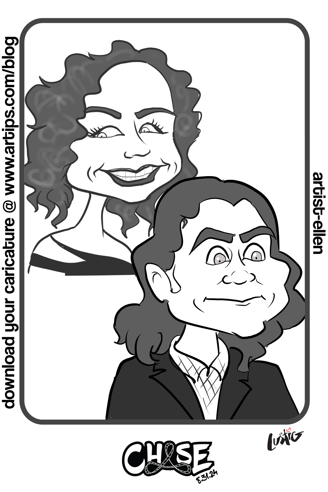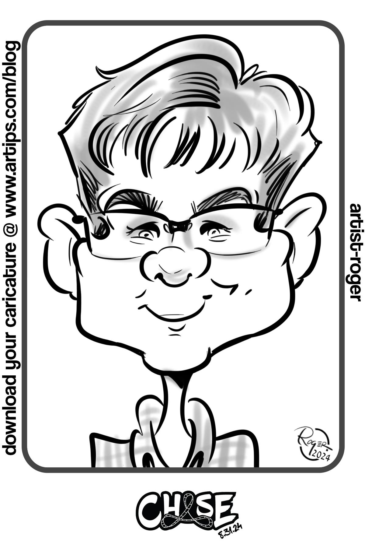 Ellen and Roger Draw Digital Caricatures at Chase’s Bar Mizvah On 8/31/24. Roger and I drew Chase’s guests at Morgan Manufacturing in Chicago. Share this: Click to share on Facebook (Opens in new window) Facebook Click to share on X (Opens in new window) X