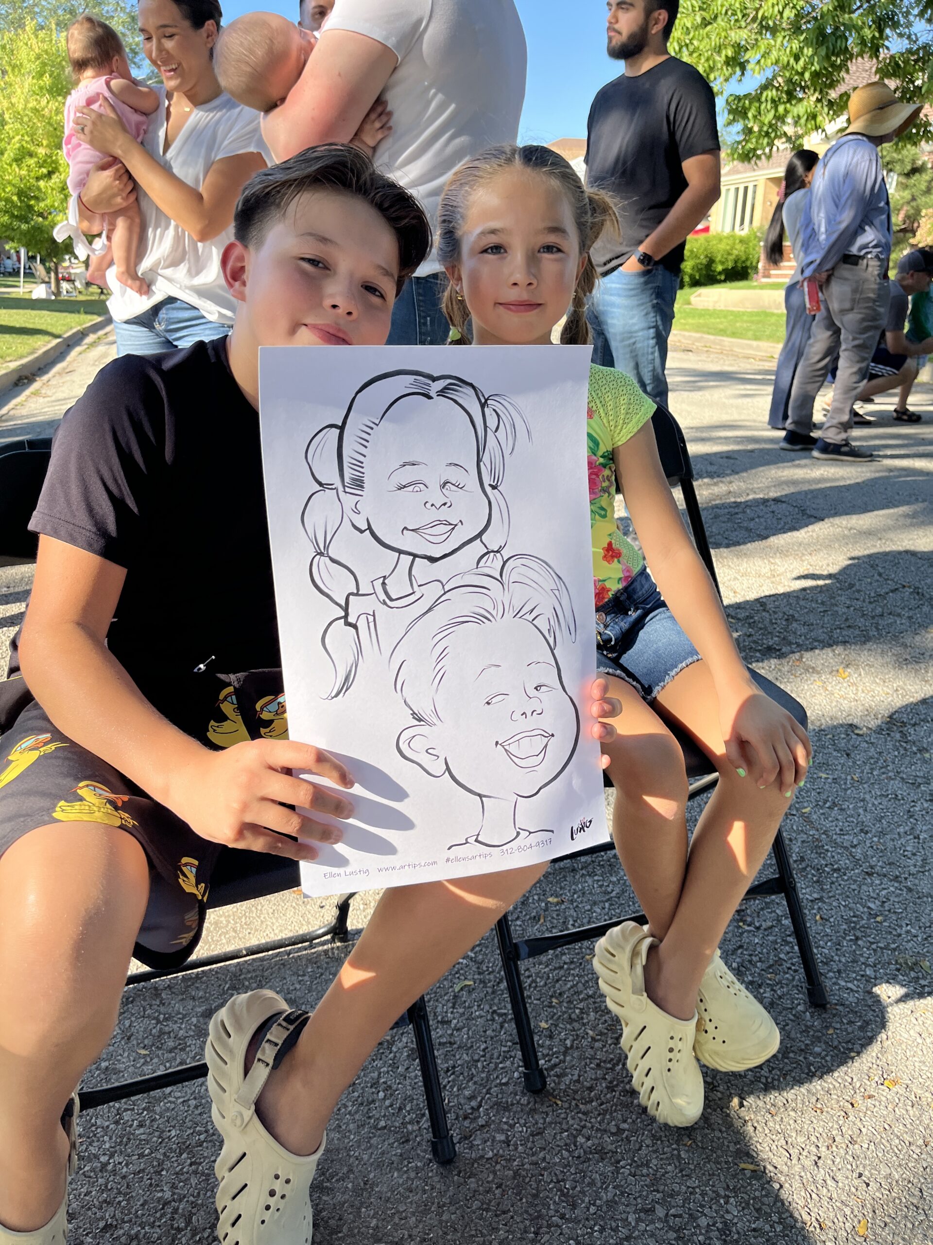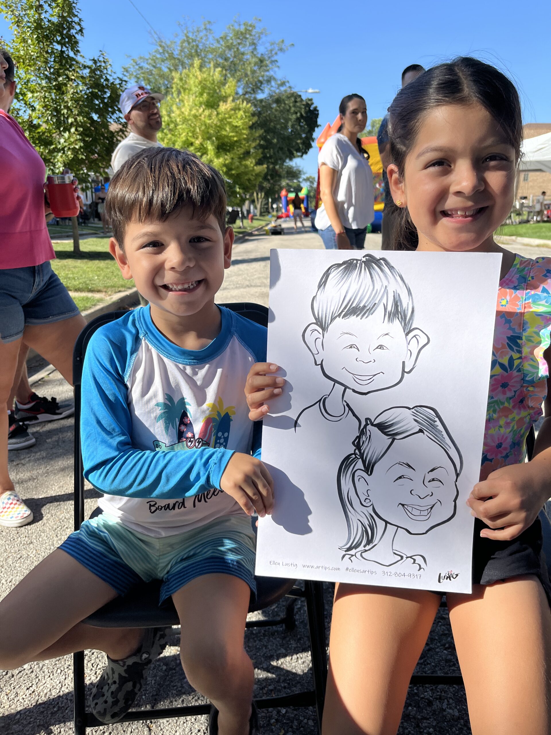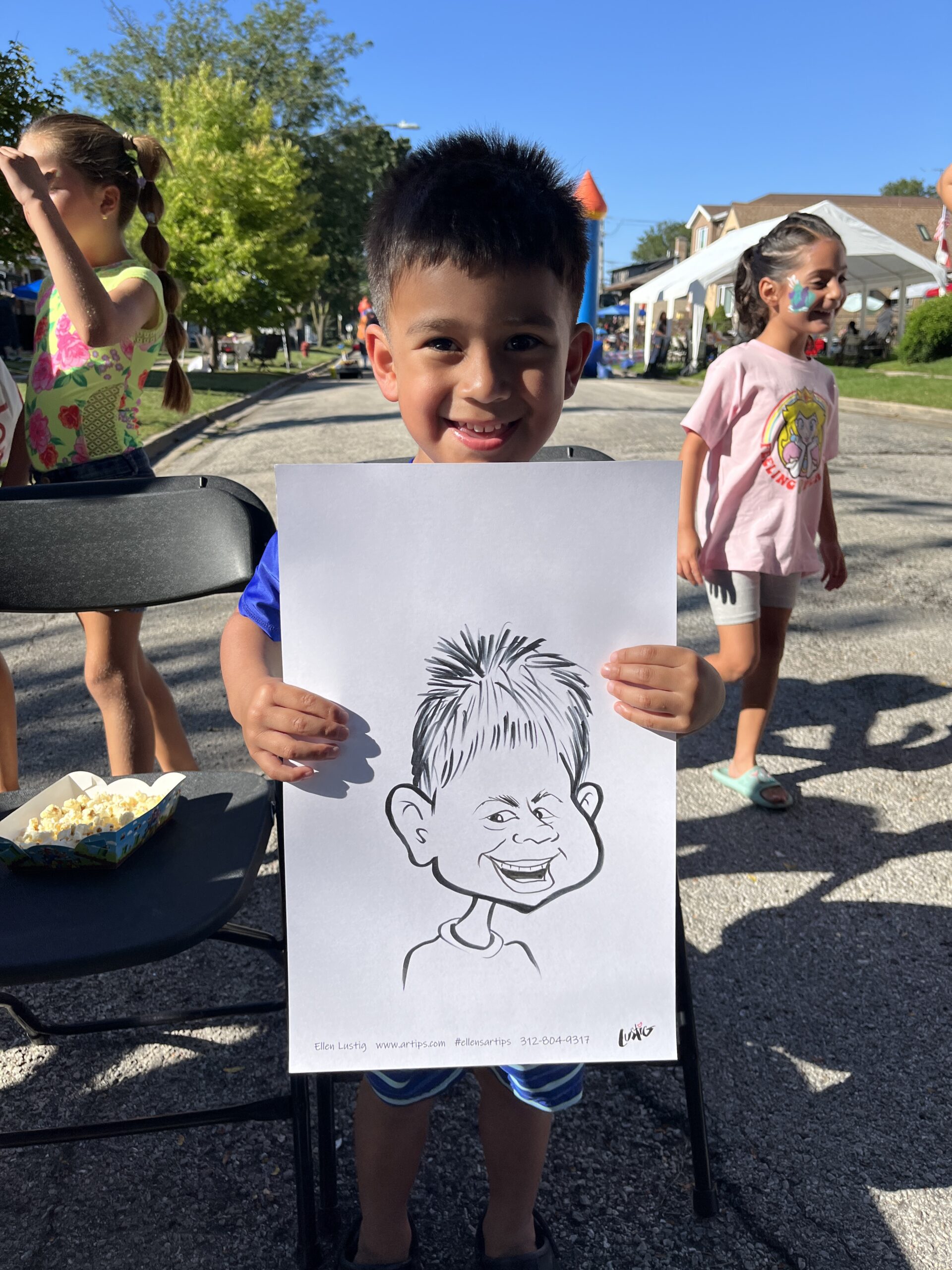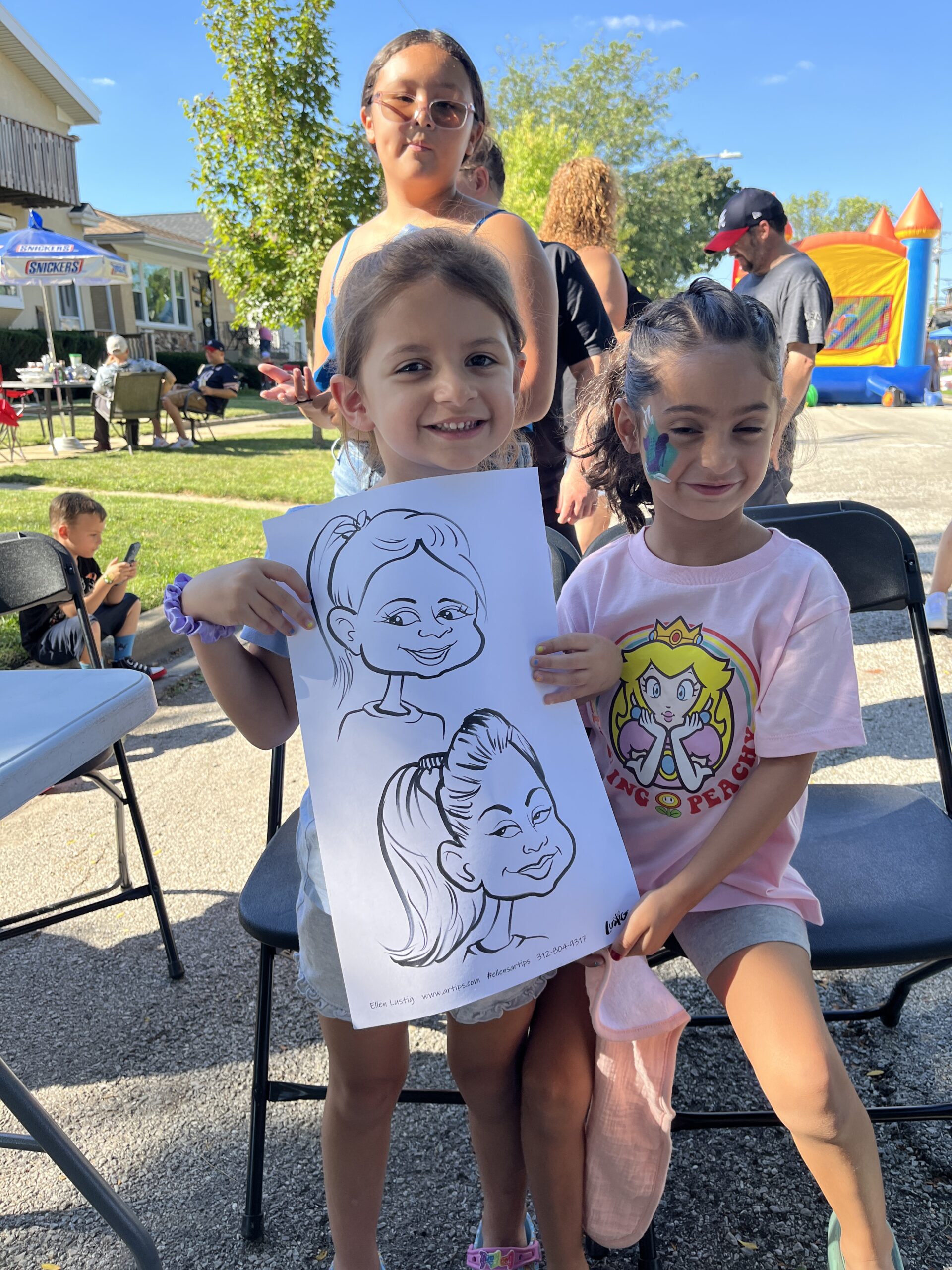 Mariliss’ 5th Birthday Block Party Celebrates with Caricatures by Ellen On 8/31/24, I drew the neighbors and friends of Mariless for her 5th birthday at their block party. Share this: Click to share on Facebook (Opens in new window) Facebook Click to share on X (Opens in new window) X