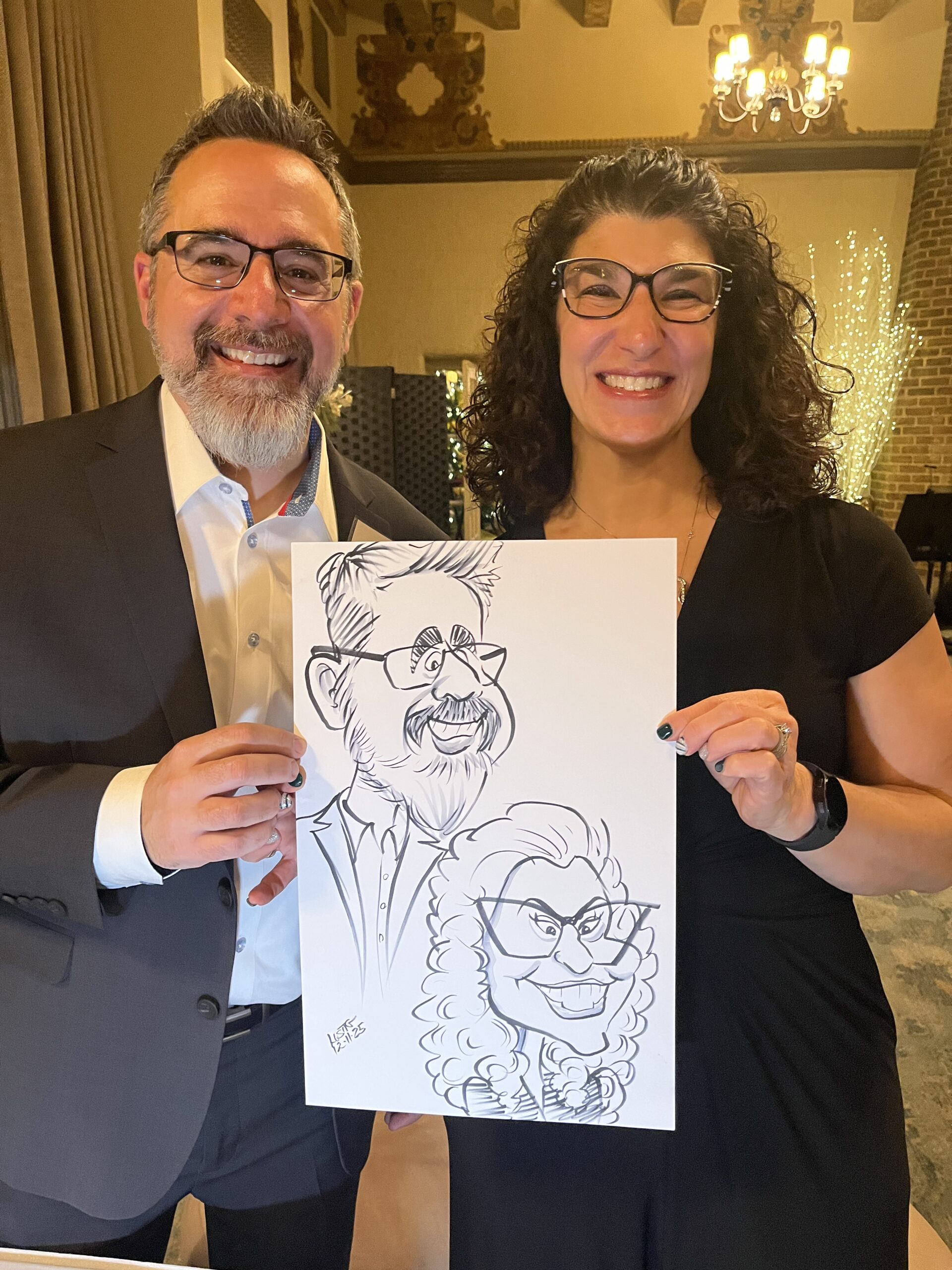 National Material Hires Ellen to Draw Caricatures On 12/11/25, I drew caricatures of the guests of Mational Material at Medinah Country Club. Share this: Share on Facebook (Opens in new window) Facebook Share on X (Opens in new window) X